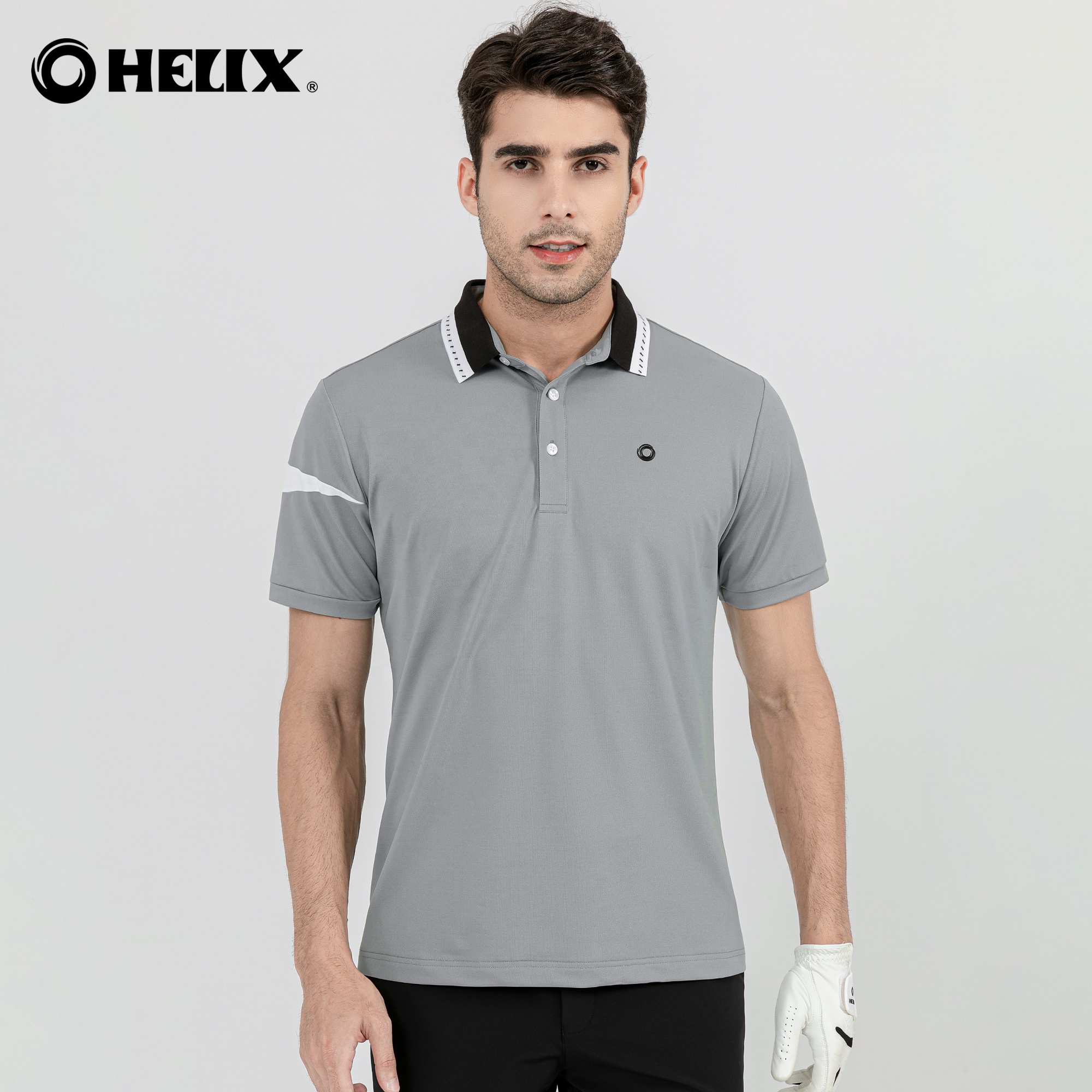 Helix Men's Polo Shirt Quick Dry Performance Short Sleeve Golf Polo Shirt Grayish Blue/pink