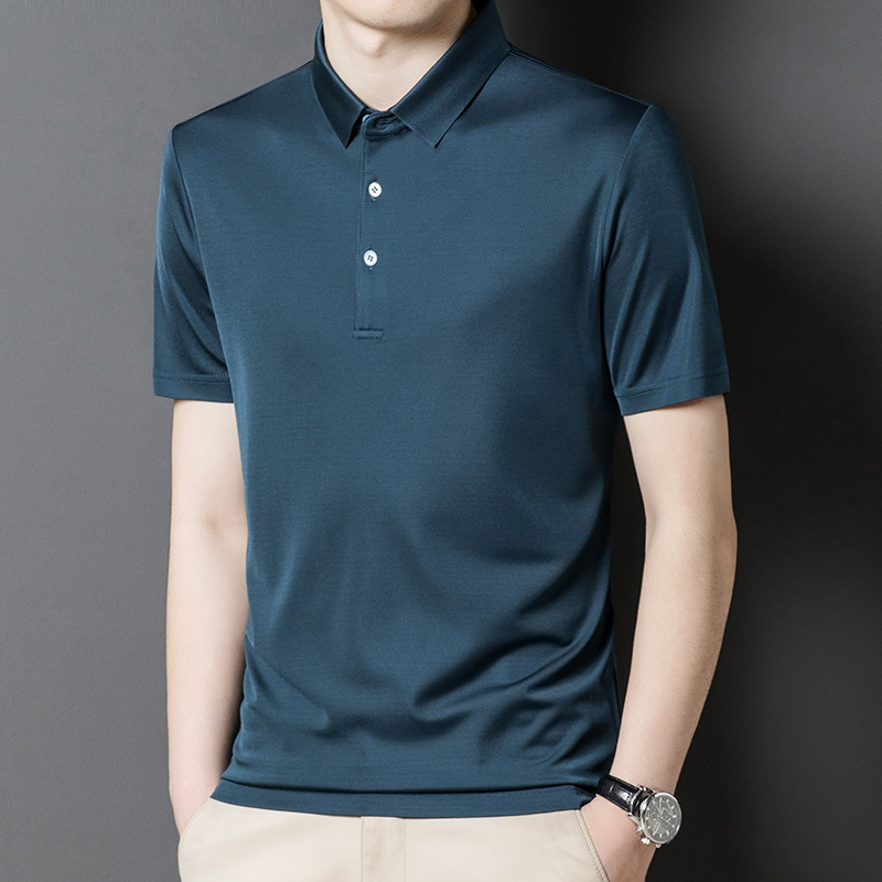 Factory Wholesale Men's Luxury Natural Material Double Face Silk Polo Shirts Solid 2 Colours