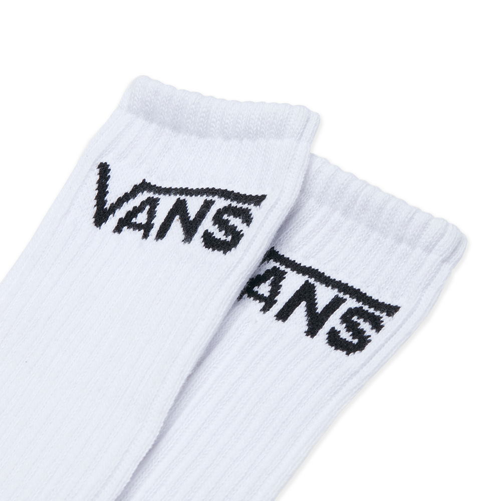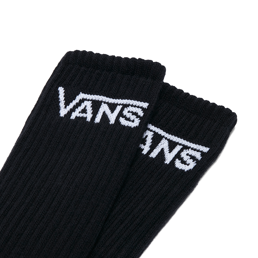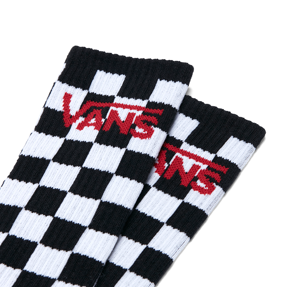 The Classic Crew Sock is a pack of crew socks with a jacquard Vans logo. Checkboard crew socks are made of 48% nylon, 47% cotton, 4% elastodiene and 1% elastane. Black & White crew socks are made of 77% cotton, 12% nylon, 7% polyester, 3% elastodiene and 1% elastane.