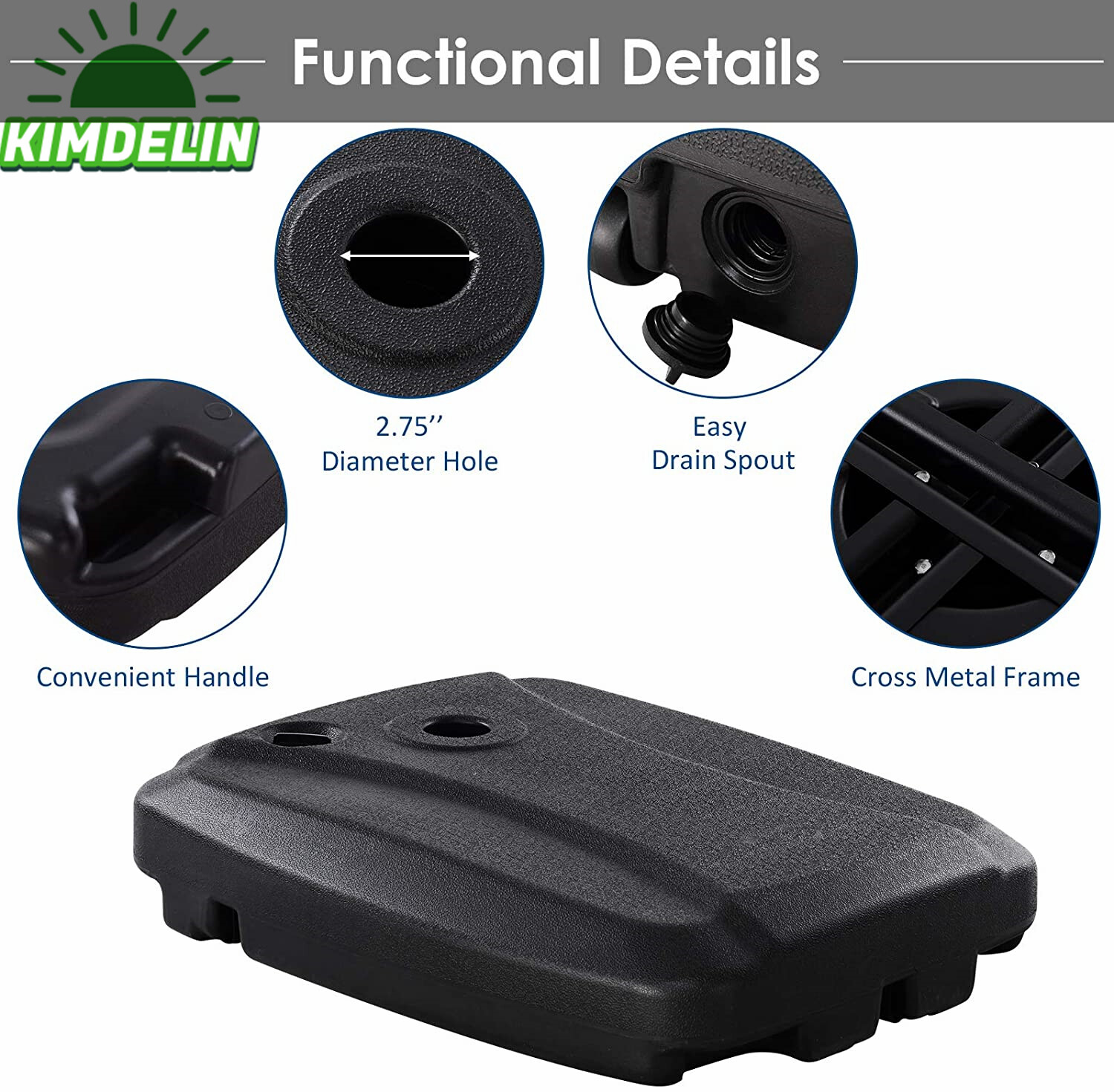 1、Durable Design: The parasol stand features the flexibility, antifreeze and low temperature resistance.2、Low Temperature Resistance: The parasol stand features slow oxidation rate, low temperature resistance, stable physical properties.3、Abrasion Resistance: The parasol stand features enhanced water filled hole, excellent plastic material, not easy to abrase.4、Smooth Design: The parasol stand features the smooth and tearing-resistant excellent materials, and it is made of excellent materials, so the hard objects are not easy to damage it.5、High Temperature Resistance: The parasol stand features the high temperature resistance and long-term sun resistance to be not easy to damage, and it features the anti-oxidation materials, long service life.Specifications(about):