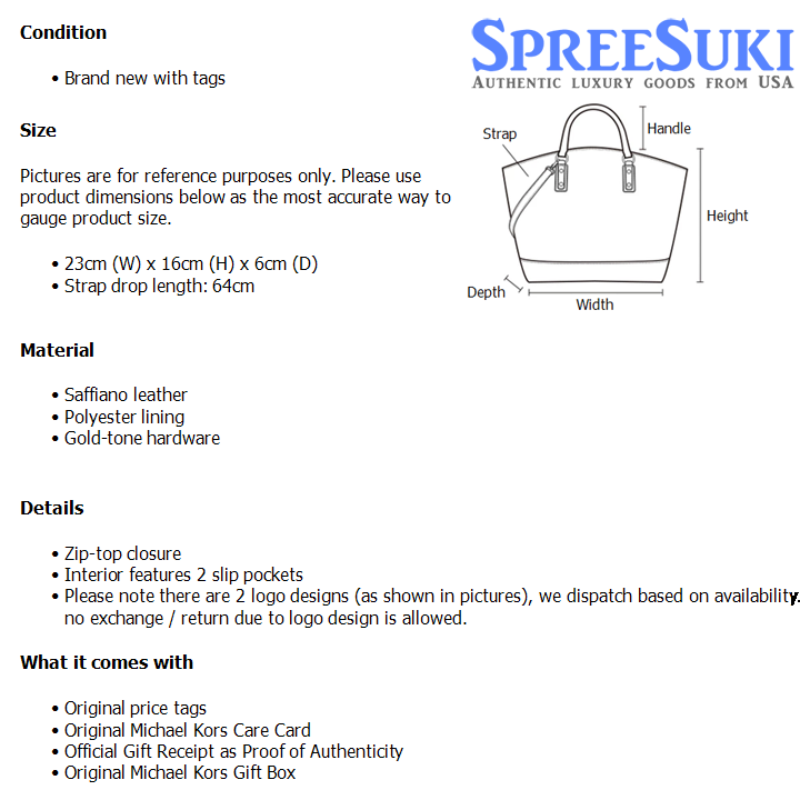 All our products are 100% authentic and purchased from Michael Kors stores in USA. We are a reputable registered business in Singapore and it is illegal to sell counterfeit goods in Singapore. This product also comes with a gift receipt which is printed by the Michael Kors store that we purchased the item from. It states the item that we purchased and the Michael Kors store that it was purchased from, proving the authenticity of the item. Buy with confidence.