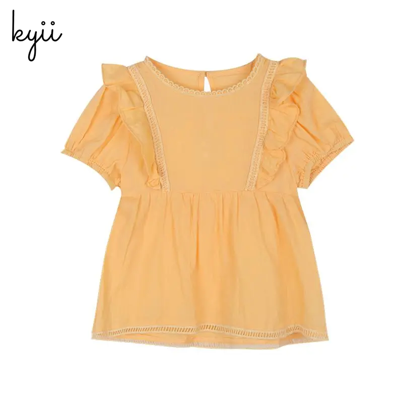 KYII Girls New Children Cotton Short Sleeve Shirt Summer Dress Western Style Baby Shirt Bubble Sleeve Top ky074
