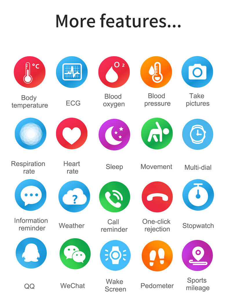 Special Features:Blood oxygen,Body temperature, electrocardiogram, respiratory rate, blood pressure, heart rate, blood oxygen