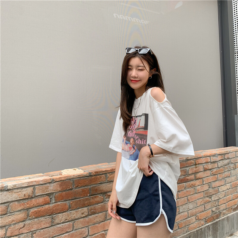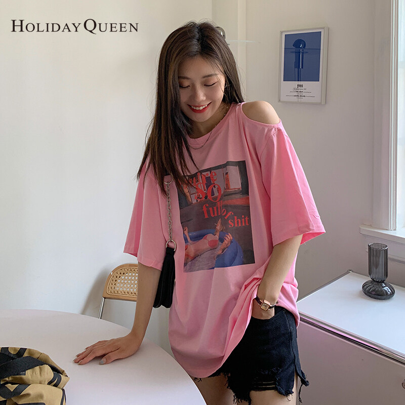HolidayQueen Summer Korean Version of The New Off-the-shoulder Short-sleeved T-shirt Women's Loose Mid-length Half-sleeved Top ClothesWomen's clothing HQ1045