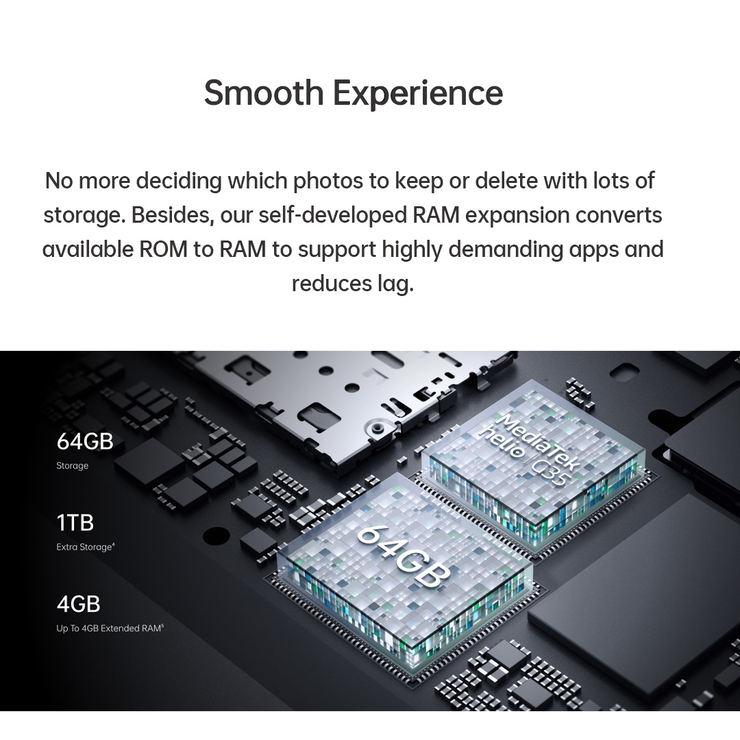 Featuring RAM and ROM Expansion and upgraded Dirac 3.0 audio, the OPPO A17 provides efficient and powerful performance.
