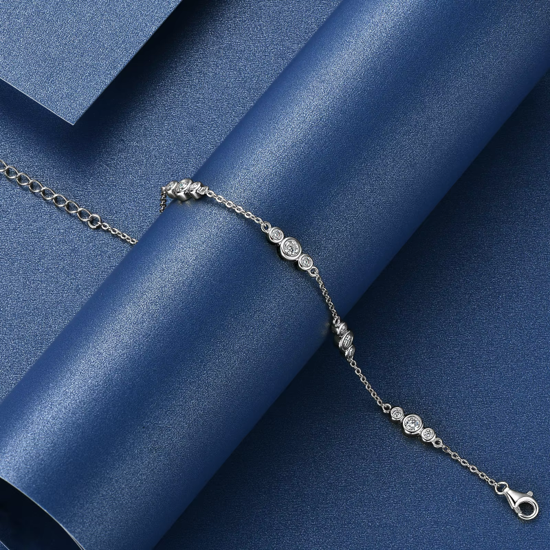 Real 925 Silver Chain Bracelet D Color Round Cut Moissanite Bracelet with GRA Certificate Women's Fine Jewelry Gifts Wedding Anniversary
