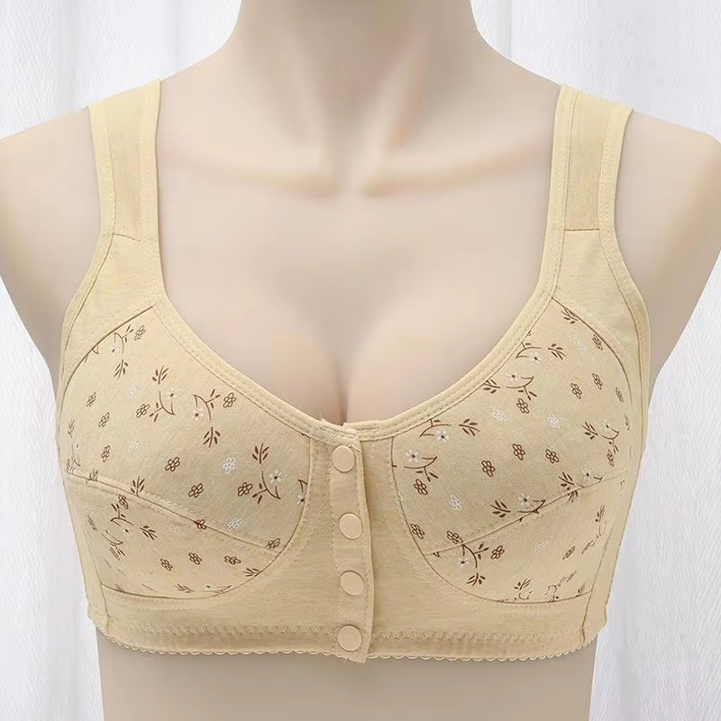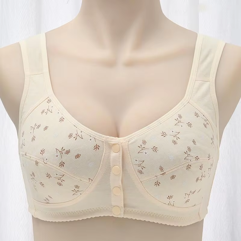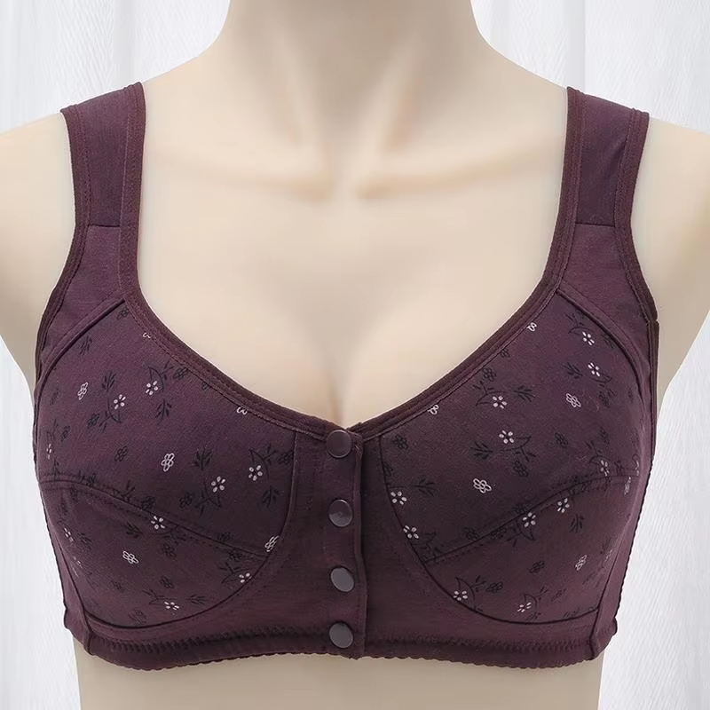 Front Closure Cotton Bra for Women Breathable Soft Brassiere Wire Free Thin Cup Bralette Sleeping Lingerie