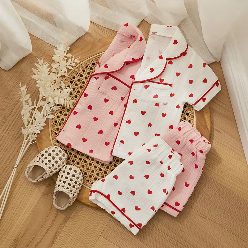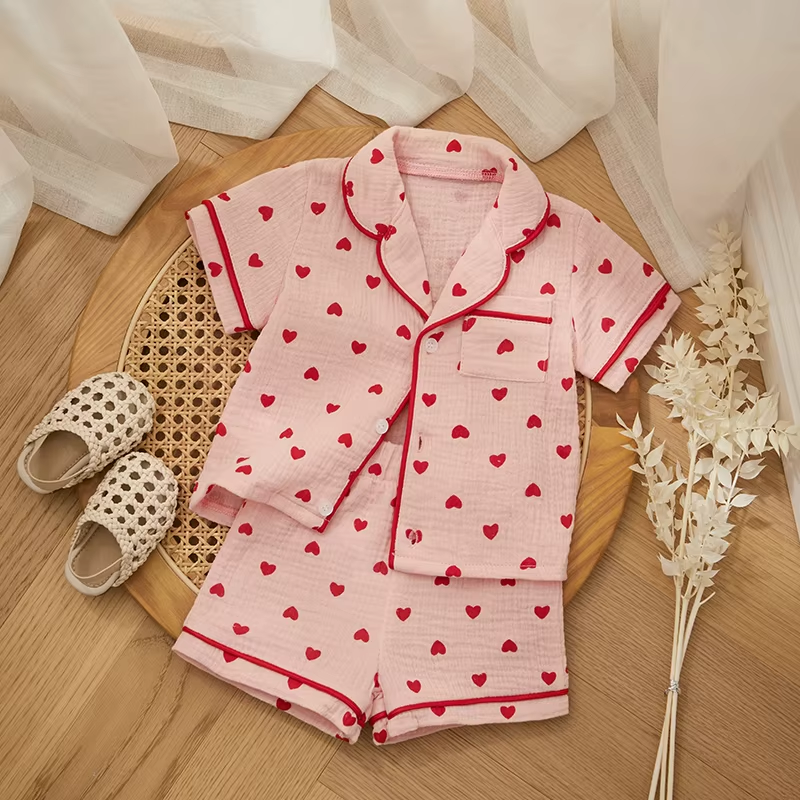 Specification: Materials: 95cm Cotton + 5cm Polyester Pattern: Heart Print, Contrast Trim Color: Pink/White Size: 6-12 Months, 12-18 Months, 18-24 Months, 3 Years, 4 Years Sleeve: Short Sleeve Gender: Baby Girl