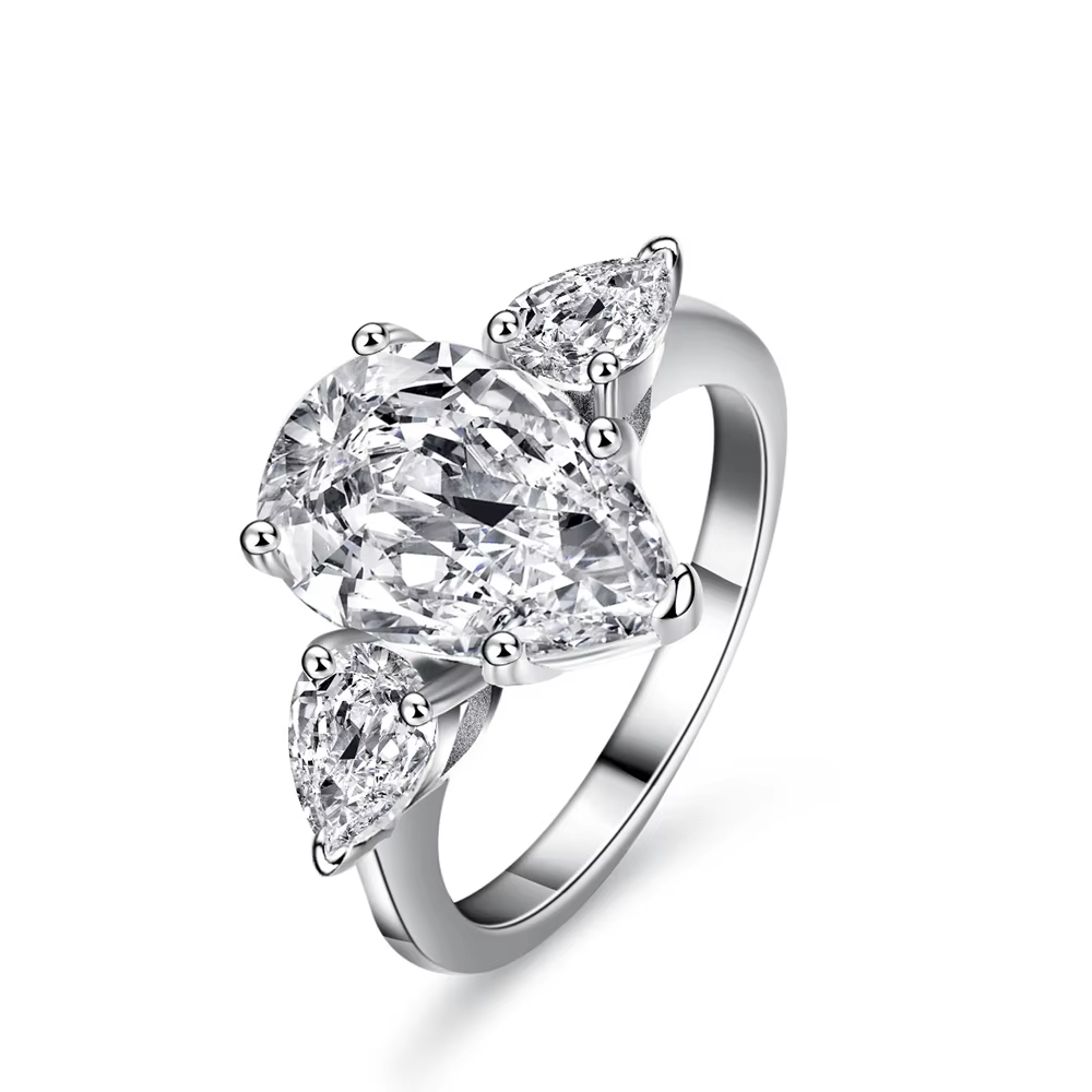 1/2/3/6Carat Pear Cut Moissanite Diamond Engagement Rings for Women 925 Sterling Silver 3-stone Waterdrop Shape Wedding Ring
