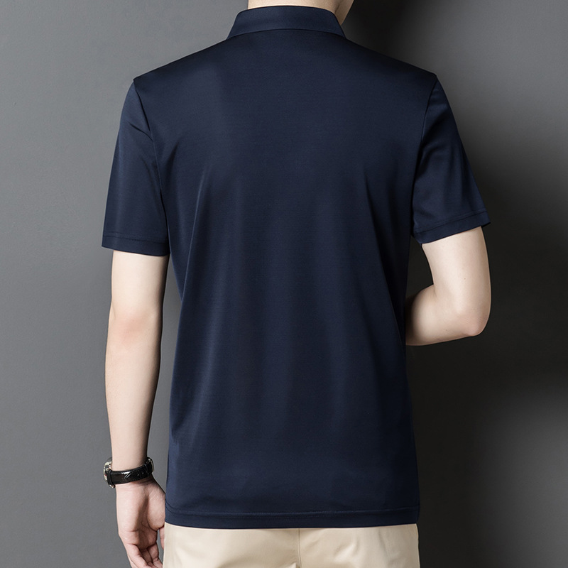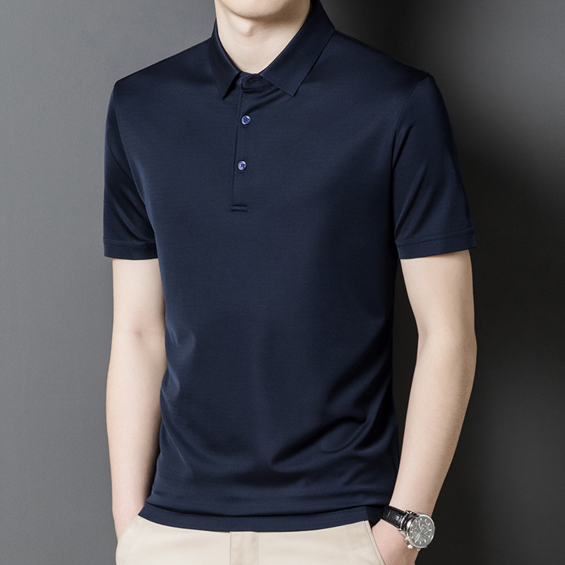 Factory Wholesale Men's Luxury Natural Material Double Face Silk Polo Shirts Solid 2 Colours
