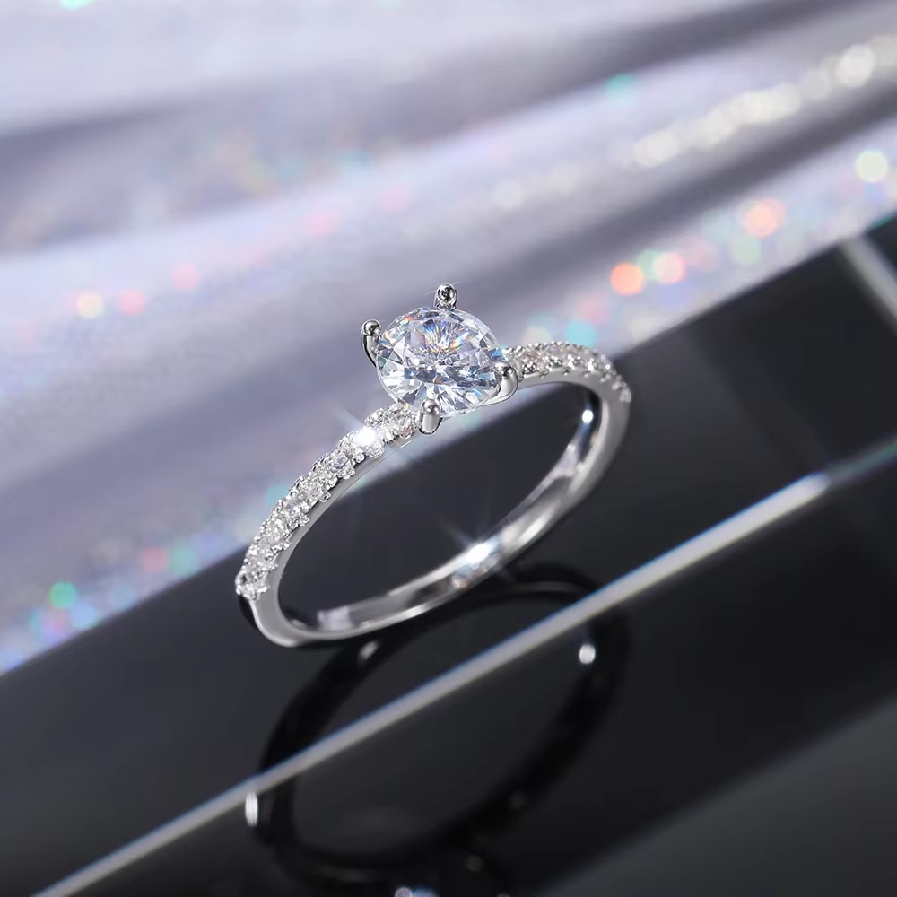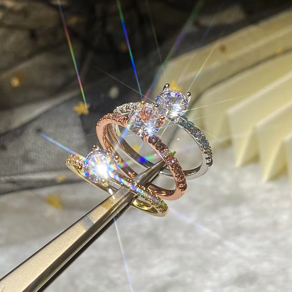 2025 Classic 4 Claws Design Round Zirconia Women Wedding Engagement Rings 3 Colors Available Low-key Bridal Jewelry Hot Sale