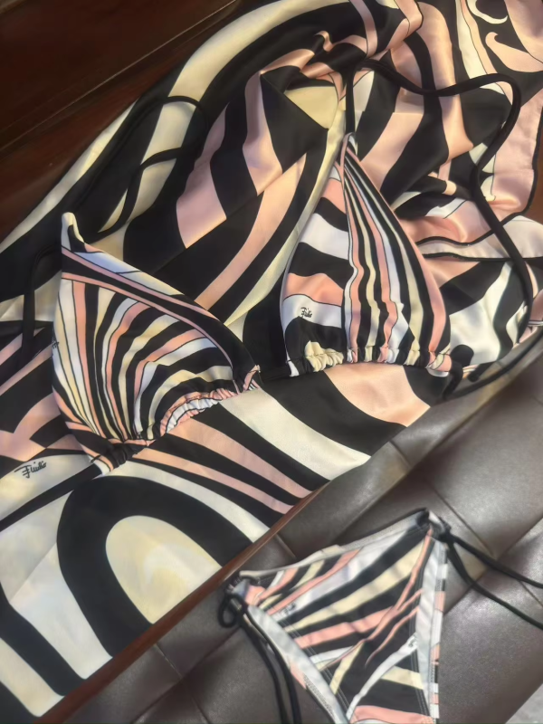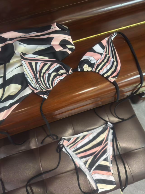 2025 Striped Bikini Scarf Three-Piece Beachwear Set Sarong Swimsuit Thong Bathing Suit - Swimwear Accessory