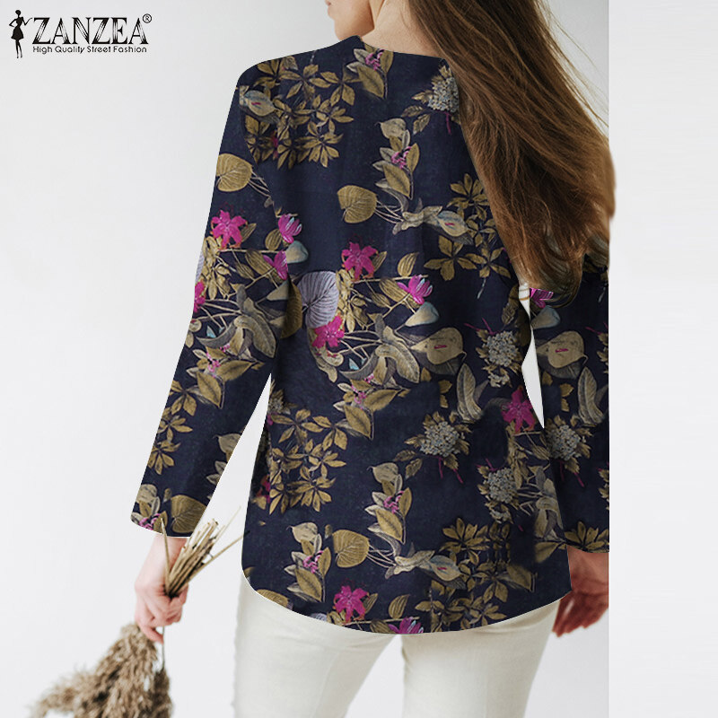 ZANZEA Womens Long Sleeve V Neck T Shirt Splid Hem Casual Holiday Cotton Linen Blouse #12