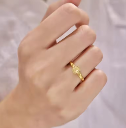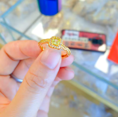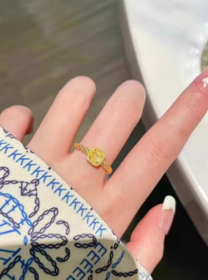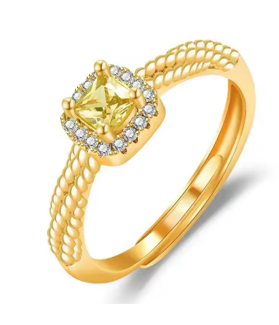 24K real gold square sugar citrine ring 9999 simple fashion ladies open ring hand ring jewelry