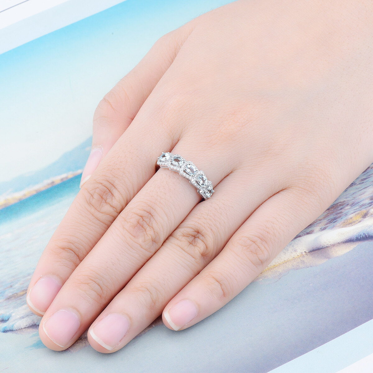 Silver S925 Ring Genuine Natural Aquamarine Multi Gemstone Design Women Top quality Style Jewerly Gifts For New Years
