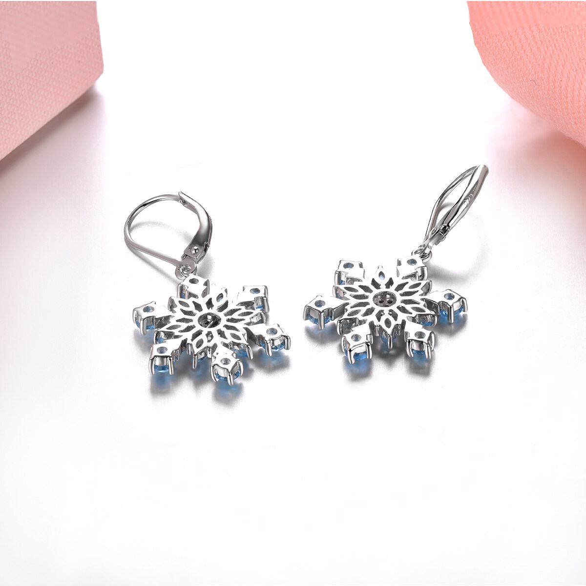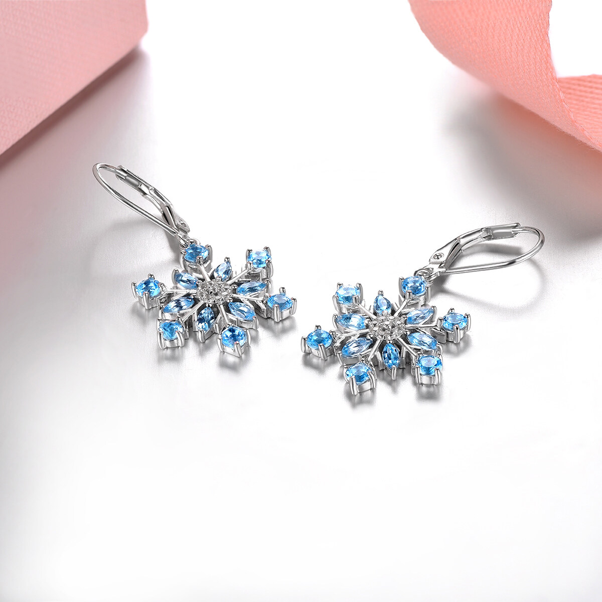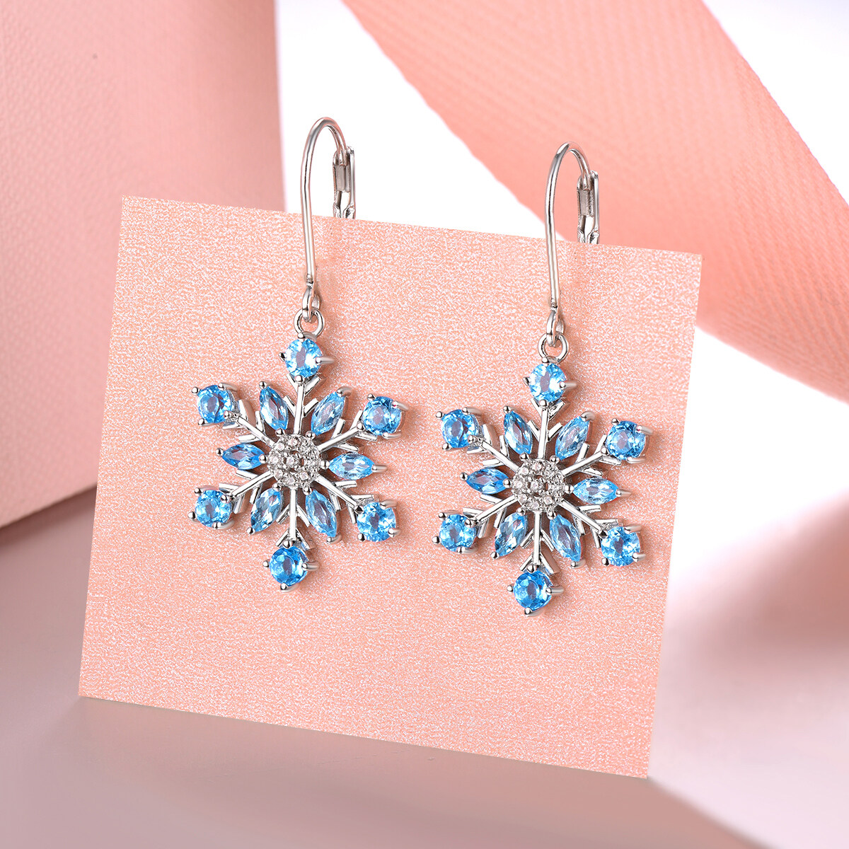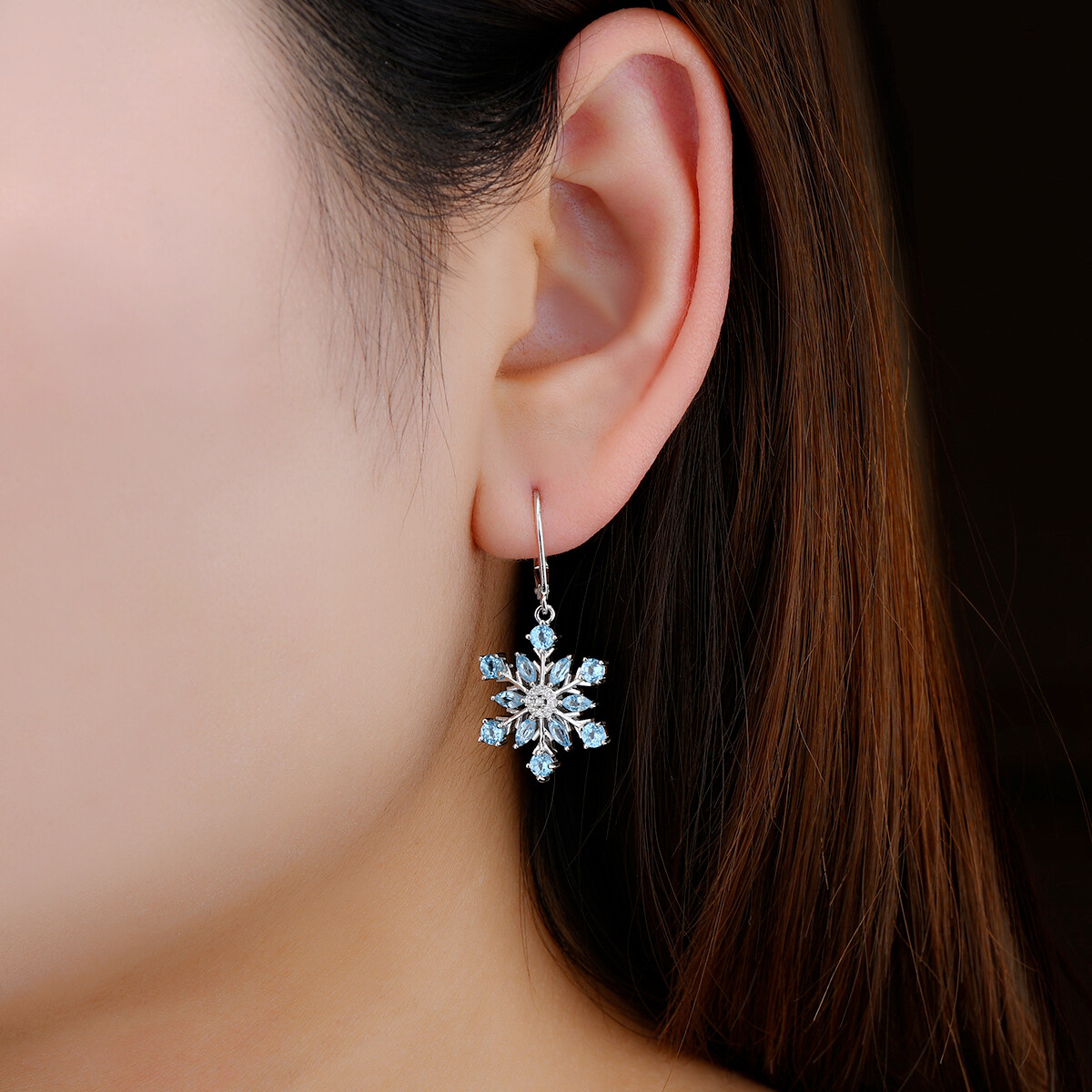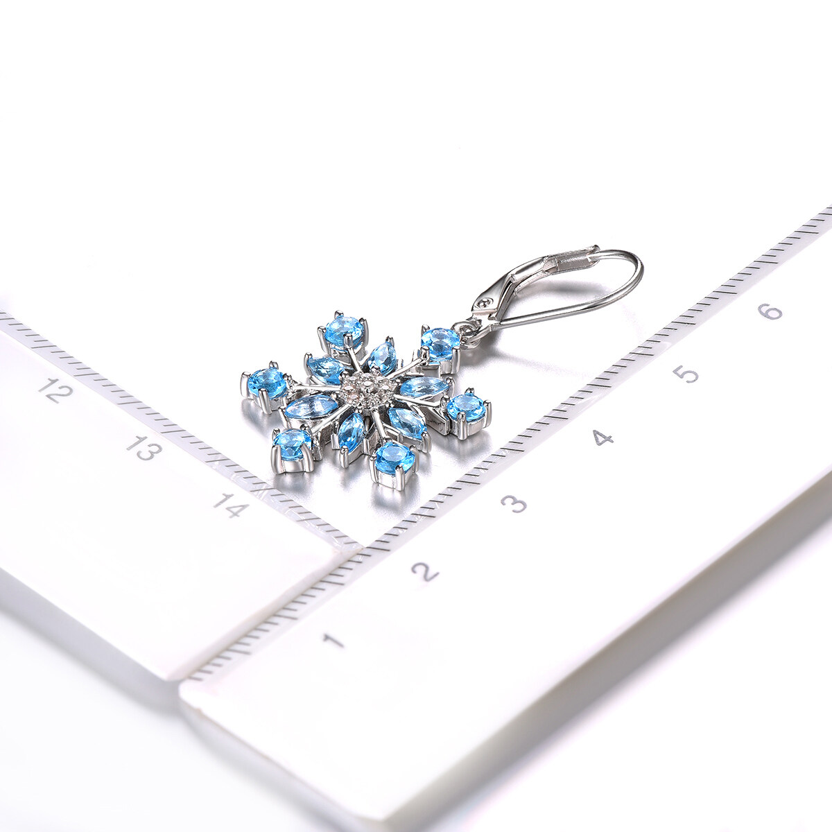 Natural Blue Topaz Sterling Silver Earrings Drop Earrings Silver 925 Original Design for Women 2.9 Carat Blue Snow Flower Design Romantic Korean Style Anniversary Wedding
