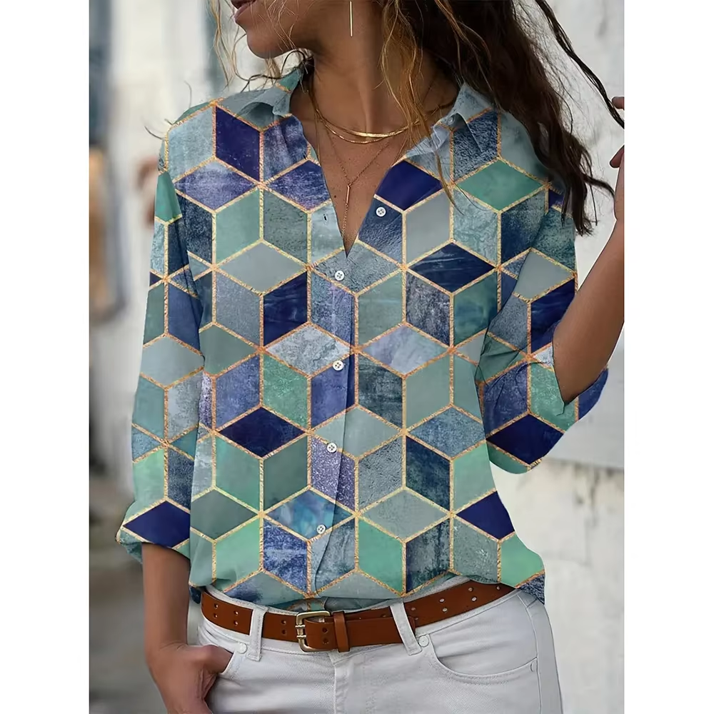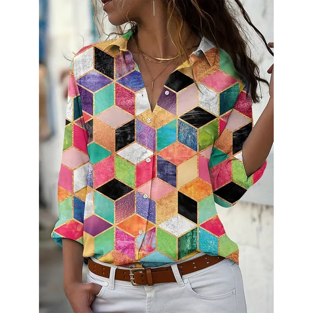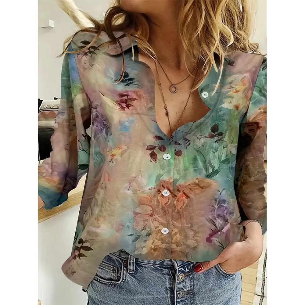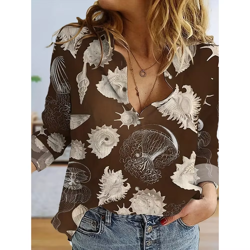 Black and Red Printed Women's Long Sleeve Shirts Fashion Single Breasted Shirts Women's Streetwear Oversized Basic Tops Autumn