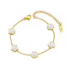 BOBOTUU Fashion Stainless Steel White Black Green Shell Flower Charm Bracelets For Women Real Gold Plated Chain Jewelry BB23071