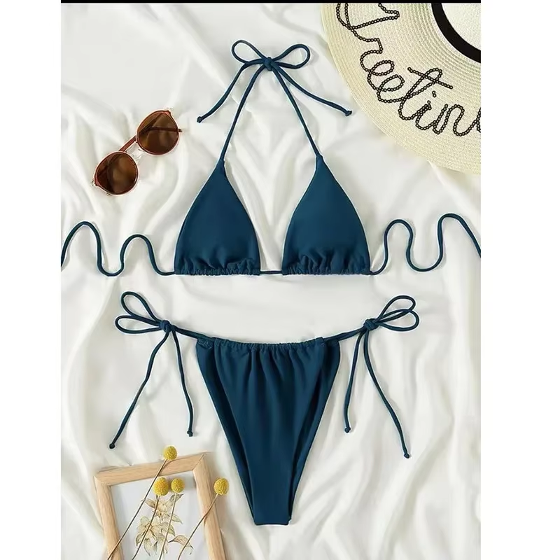 Customized LOGO women's clothing hot sale sexy triangle bikini strap swimsuit backless swimsuit