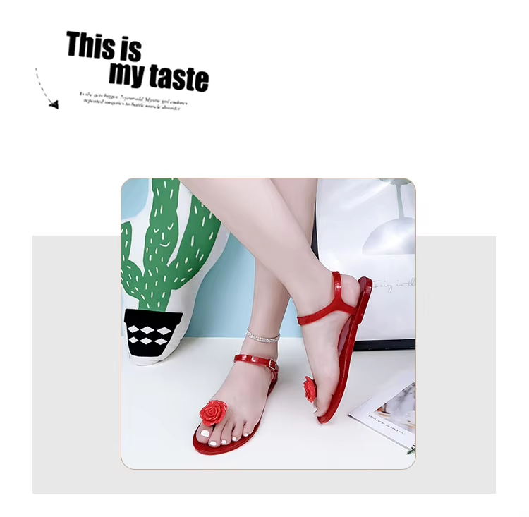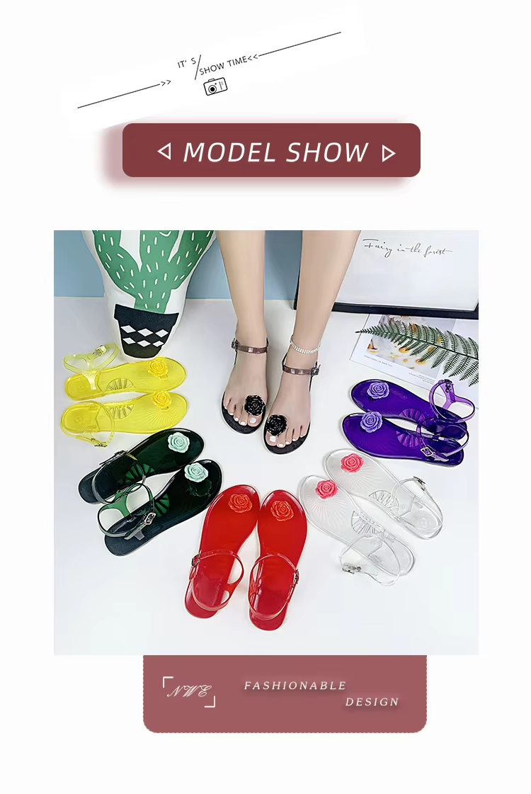 EOFK Women Jelly Sandals PVC Camellia Flower Flat Casual Summer Slides with Non-slip Buckle Ankle Strap for Outdoor Beach