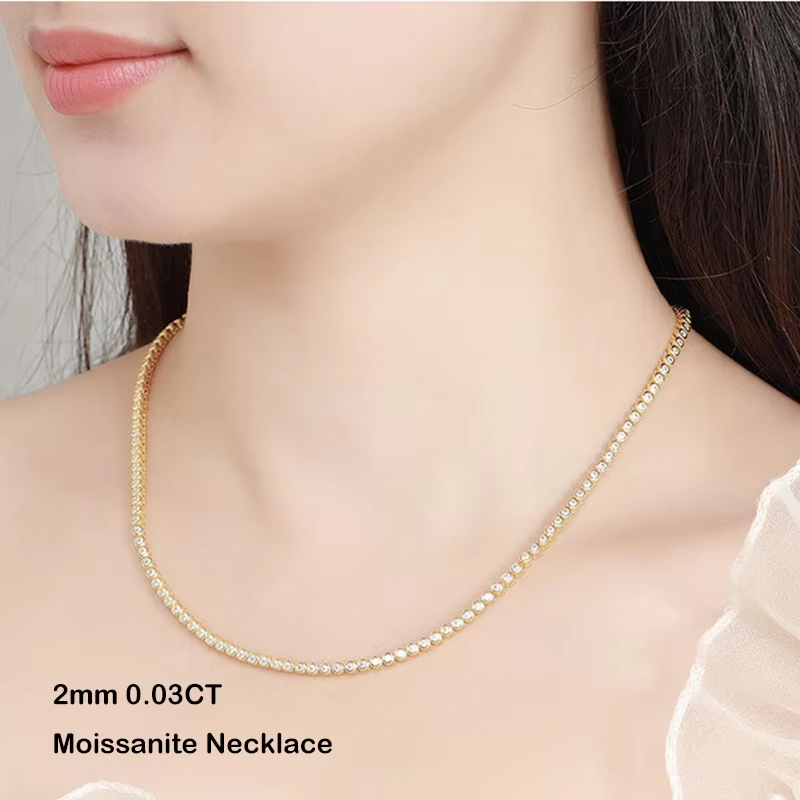 EWYA Sparkling 2/3mm Full Moissanite Tennis Bracelet for Women Party S925 Silver Plated 18K Pass Diamond Test Bezel Bracelets