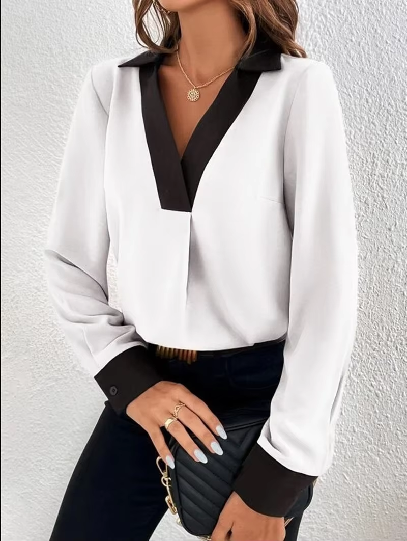 Fashion V-neck Long Sleeve Women Tops And Blouses 2025 Spring Casual Patchwork Color Top Femme Office Lady Blouse Shirt Women's