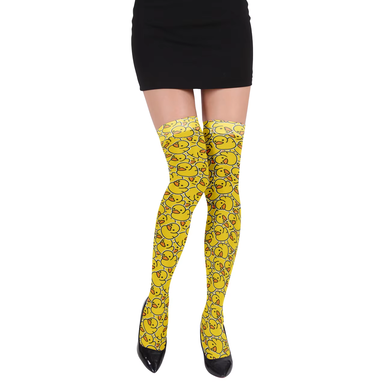 Fashion yellow cartoon duck women's stockings 3d printing Harajuku Lolita JK girl in knee stockings Kawaii sweet stockings