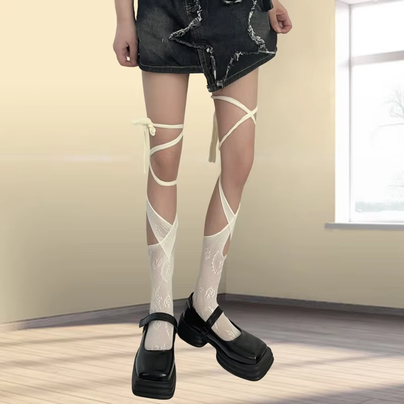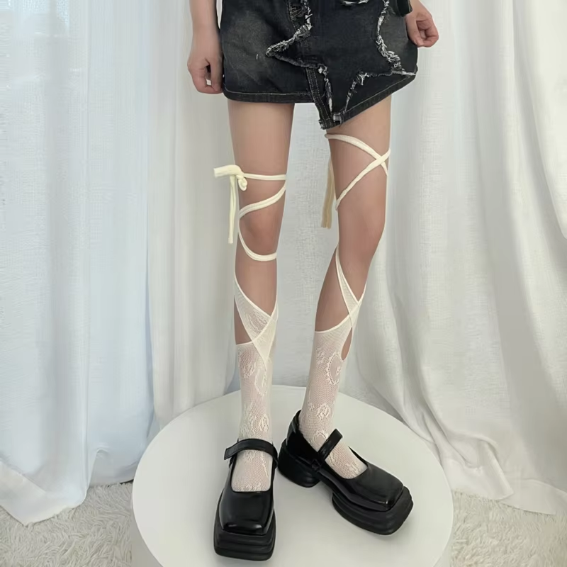 Specification: Material: Nylon Color: Black, white Pattern Type: Lace Gender: Women Item Type: Thigh High Socks