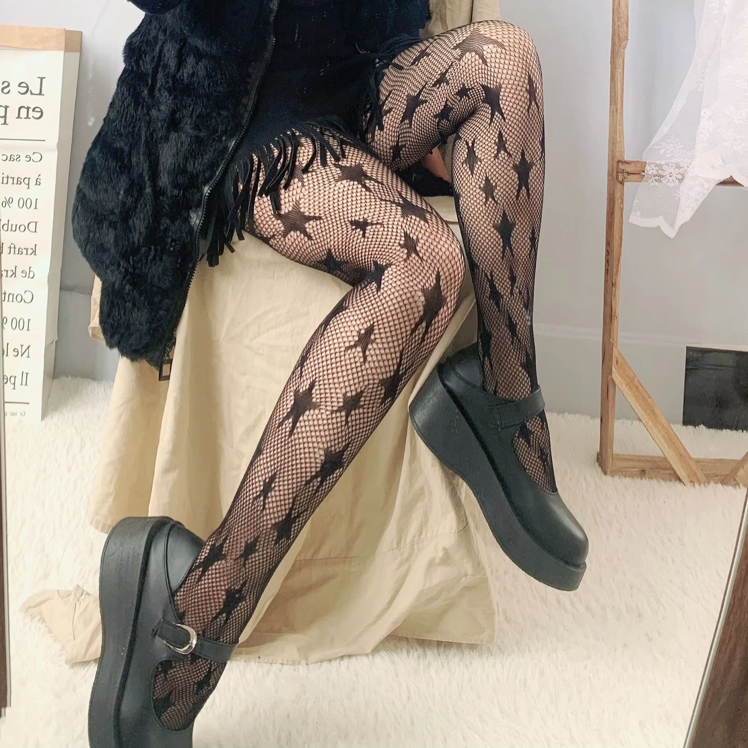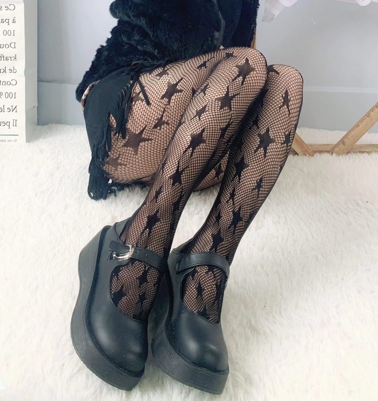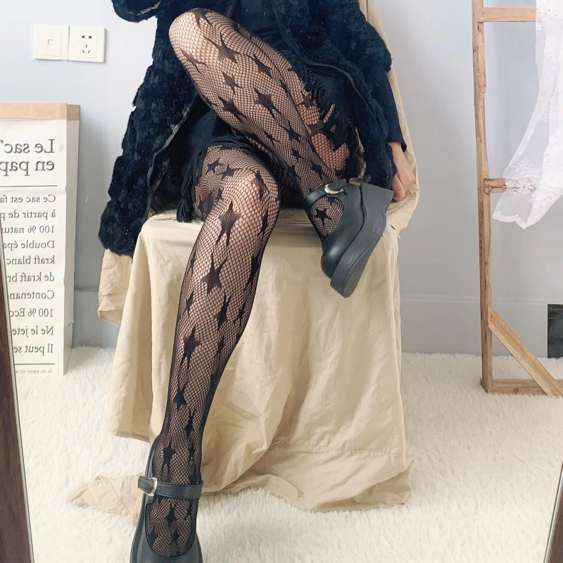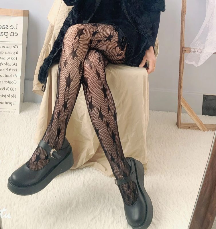 Lolita Dark Black Pantyhose Star Mesh Stockings Female Fishnet Stockings JK Girls Socks Mesh Tights Lingerie Thigh High JK Socks