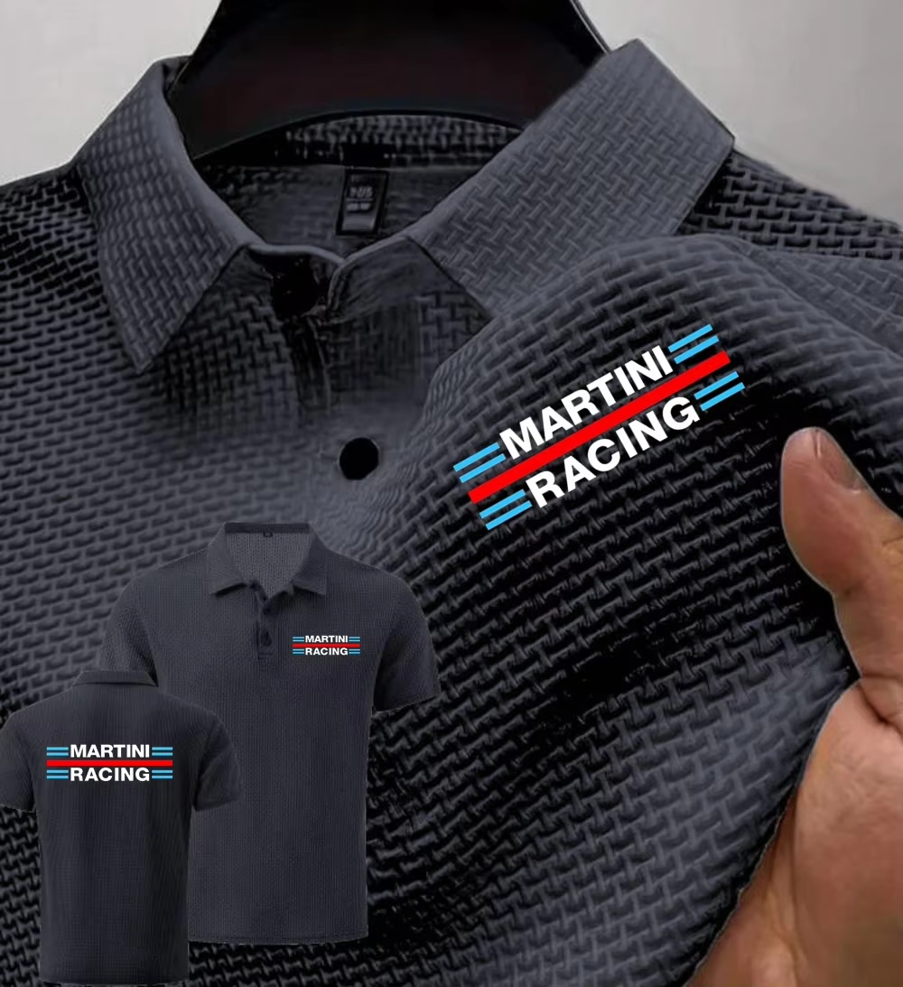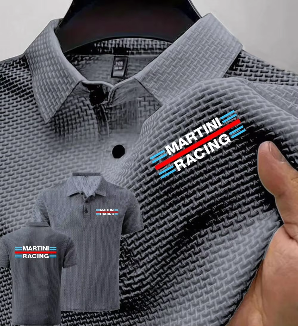 New Men's Polo Short sleeved Martini Racing Tee Ice Silk Breathable Fashion T-Shirt Male Clothes Lapel Tops