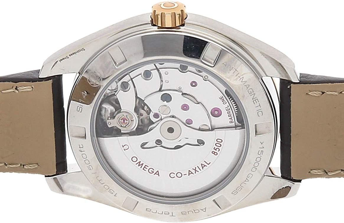 Omega Seamaster Aqua Terra 150m (23123422102001) self-winding automatic watch features a 41.5mm stainless steel case with an 18k rose gold bezel surrounding a silver Teak dial on a brown alligator strap with a stainless steel deployant buckle. Functions include hours minutes seconds and date. This watch comes with box and papers. Majority of time remaining on the factory warranty!