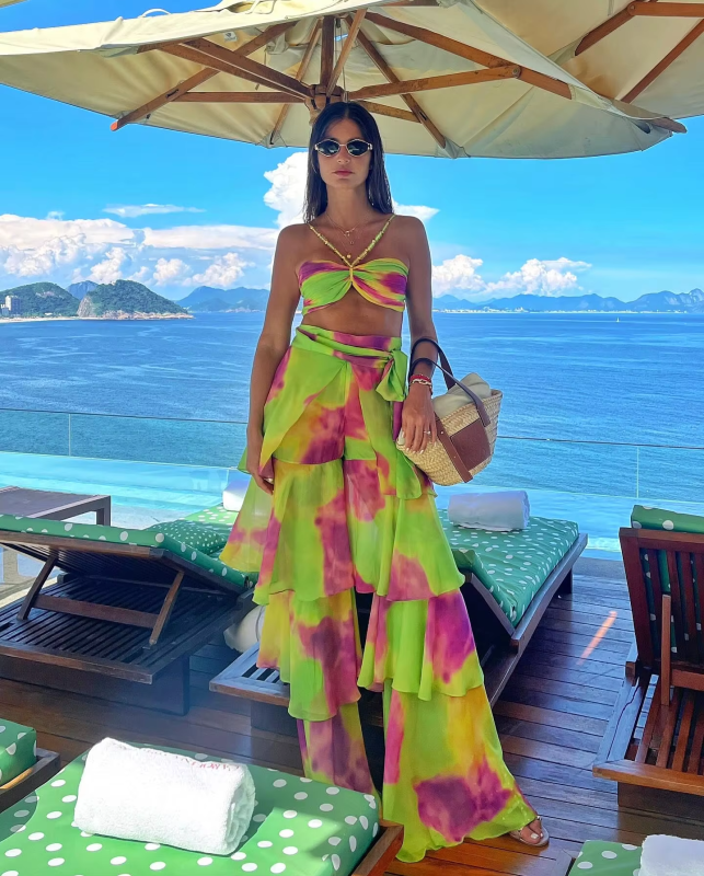 Sexy Print 3 Pics Women Bikini Set With Pants Pleated Bra High Waist Hollow Out Wide Leg Pants Suit Summer Beach Swimsuit