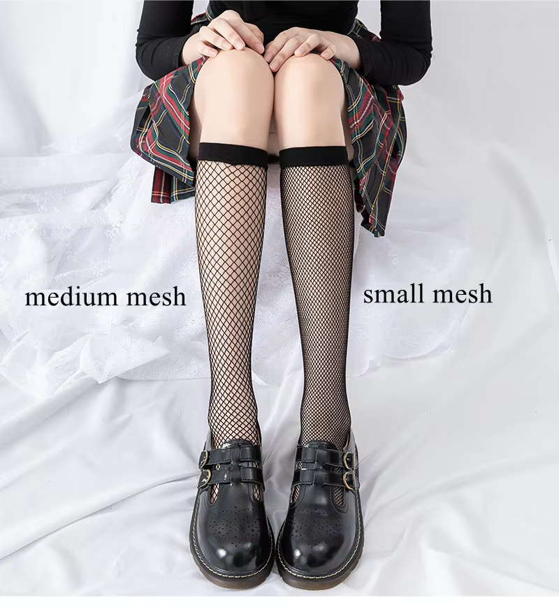 Solid Color Black White Long Socks Stockings Women Hollow Out Mesh Fishnet Stockings JK Lolita Sweet Girls Knee Socks Stockings