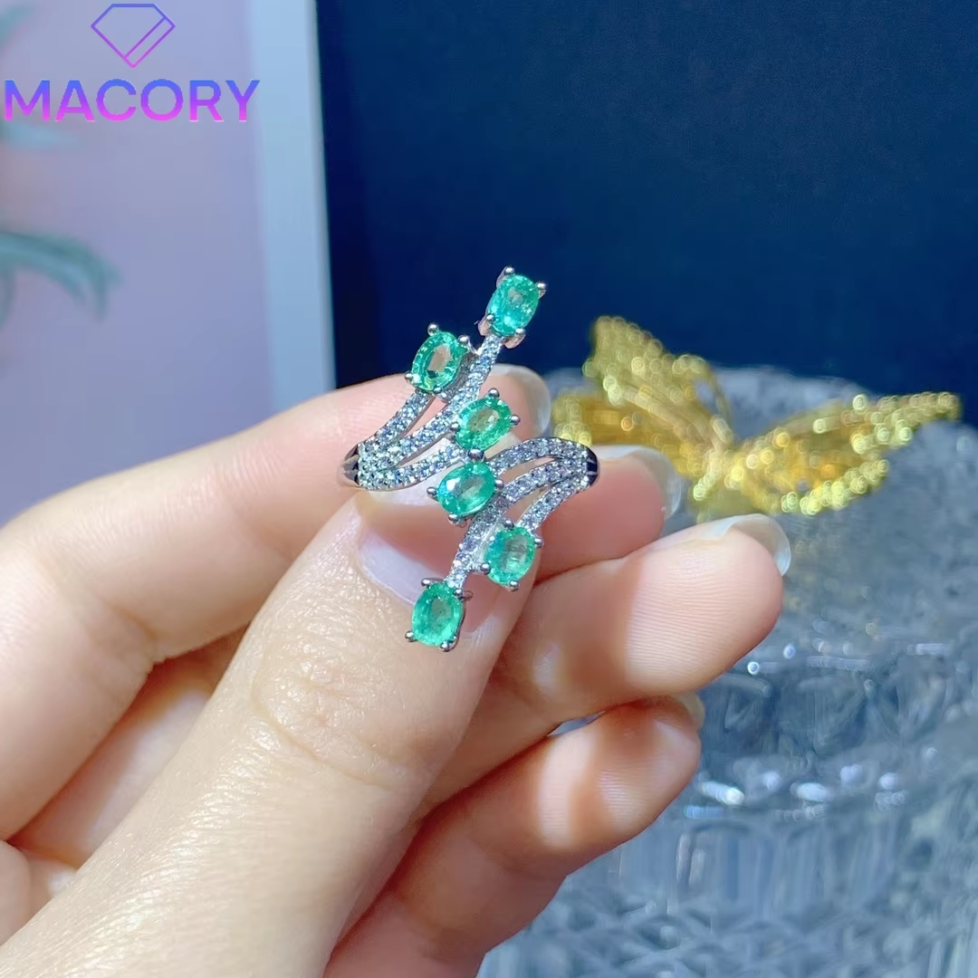 Sterling silver 925 emerald ring female wedding luxury female ring free delivery luxury brand replica gem jewelry
