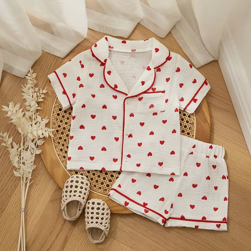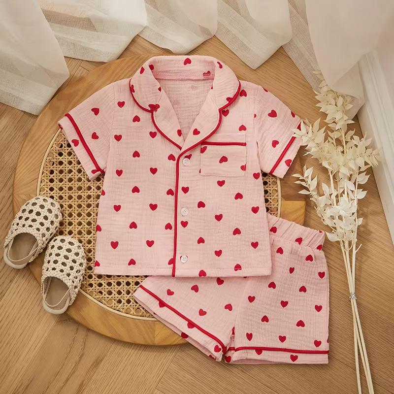 Specification: Materials: 95cm Cotton + 5cm Polyester Pattern: Heart Print, Contrast Trim Color: Pink/White Size: 6-12 Months, 12-18 Months, 18-24 Months, 3 Years, 4 Years Sleeve: Short Sleeve Gender: Baby Girl