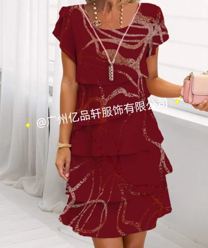Summer Irregular Women Dress Printed Foreign Style Floral Chiffon Short Sleeves 2025 Trendy Contrast Patchwork Chic Slim Outfits