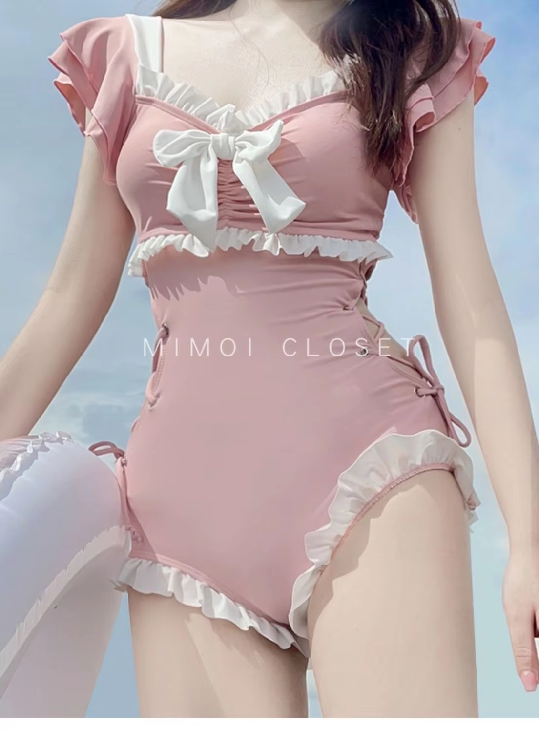 Summer Sexy Fashion Harajuku Bikinis Lady Kawaii Sweet Patchwork Women's Clothing Swimwear Sleeveless Bowknot Swimsuits Women