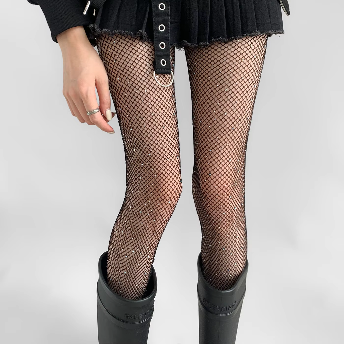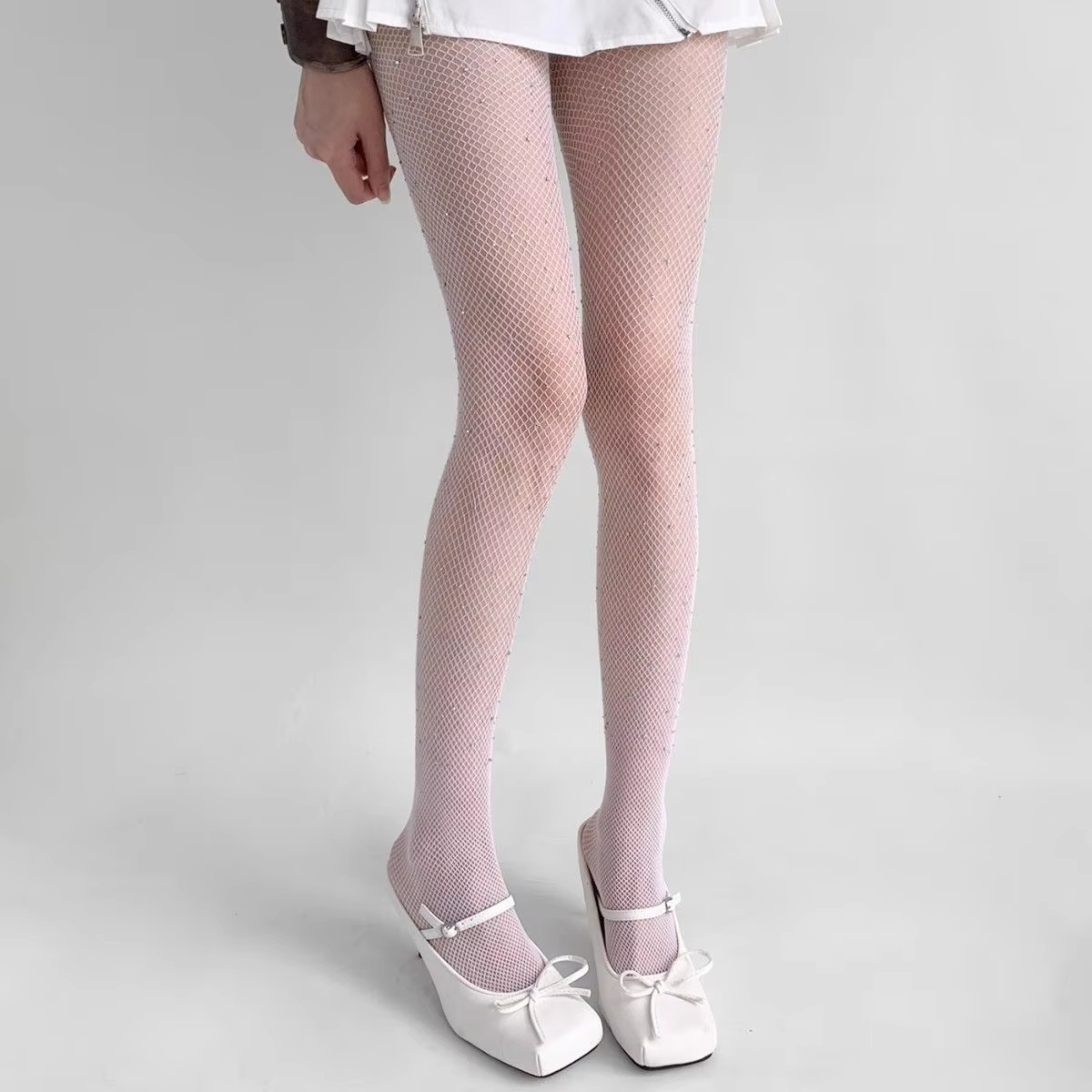 Women Sexy Rhinestone Shiny Fishnet Tights Hollow Out See Through Mesh Pantyhose JK Lori Uniform Nylon Elastic Hosiery Stockings