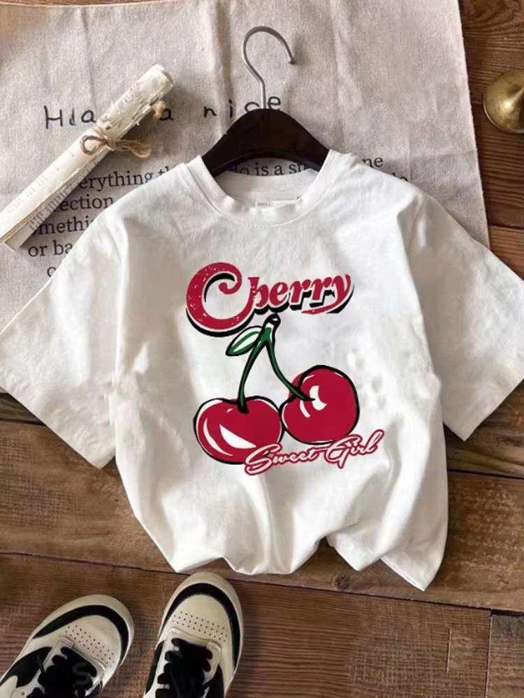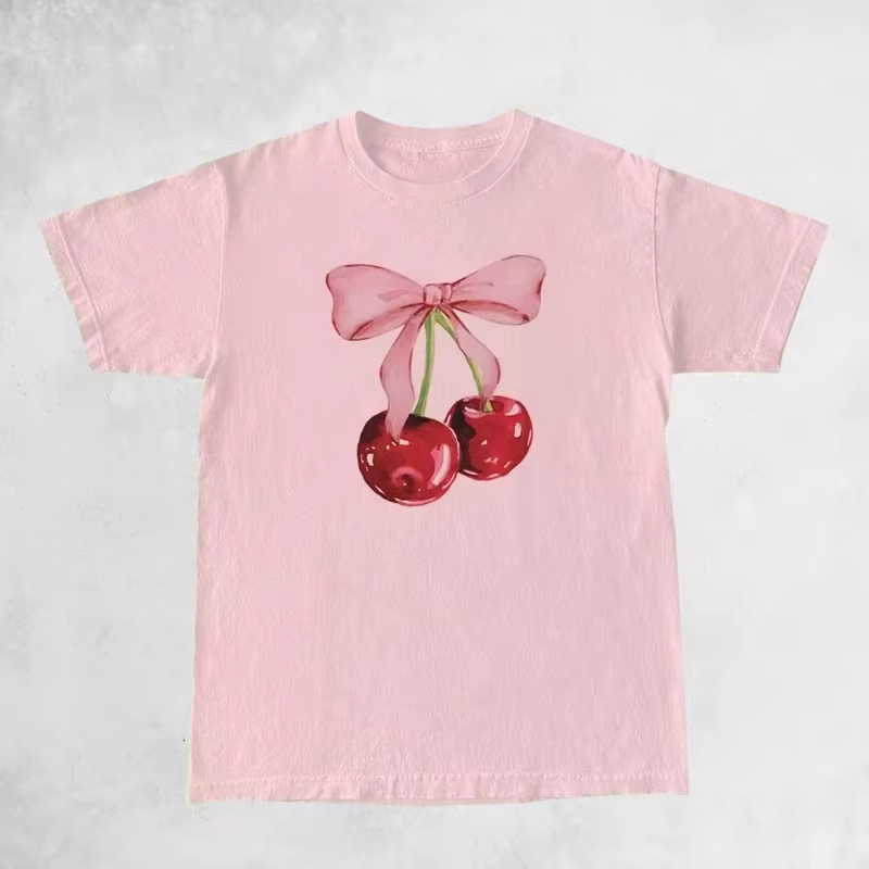Y2K Cherry Bow Printed T Shirt Women Vintage T Shirt Trendy Cute Coquette Tee Shirt Short Sleeve Cottagecore